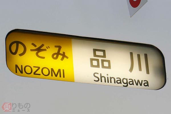 通常はない「のぞみ 品川」の行先表示。イベントで掲出された(2019年10月、恵 知仁撮影)。