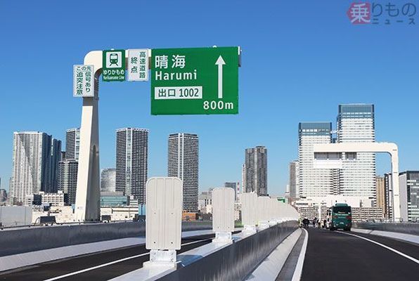 また、末端が他の首都高の路線に接続していないなかでも、晴海と銀座は目と鼻の先とあってか、9号深川線、11号台場線などからの交通転換が進んでいるようです。経路の選択肢が増え、他路線の通行止め時の迂回路としても機能しているといいます。