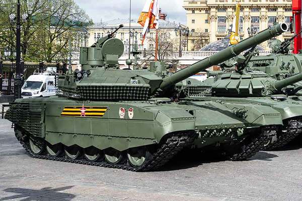 2022年対ドイツ戦勝記念式典で展示されたロシア陸軍のT-90M戦車(画像:ロシア国防省)。