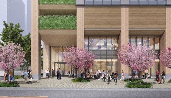 このビルは地上18階。三越前駅の北東の昭和通り沿いに建ちます。最大の特徴は「木造建築」だということです。完成すれば、木造の賃貸オフィスビルとしては日本で最大かつ最高層になるといいます。