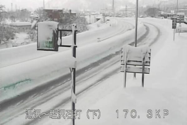 関越道の通行止め区間に近い湯沢IC~塩沢石内IC間の状況。1月8日10時35分現在(画像:NEXCO東日本)。