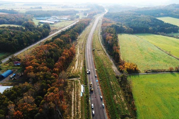 具体的には、防雪林帯や中央分離帯の設置、拡幅などが行われます。道路は幅員13.5m・2車線、設計速度60km/hで整備されます。