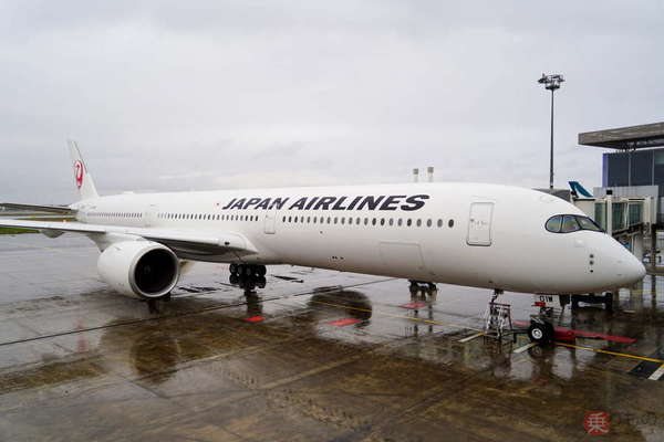 JALのエアバスA350-1000(現地時間2023年12月13日、乗りものニュース編集部撮影)。