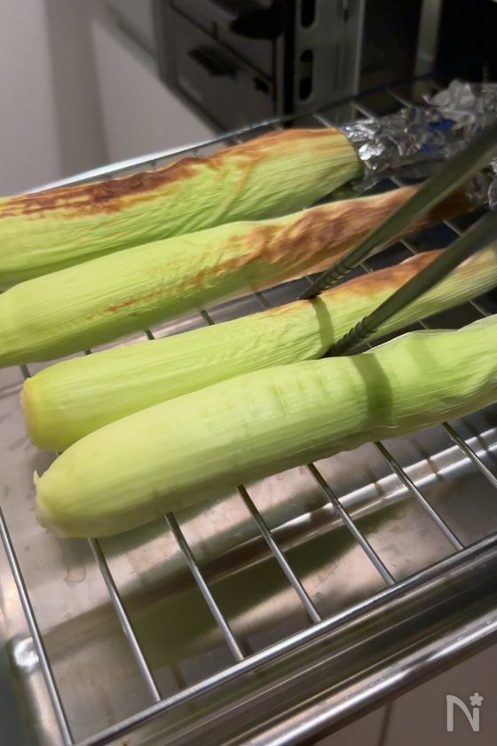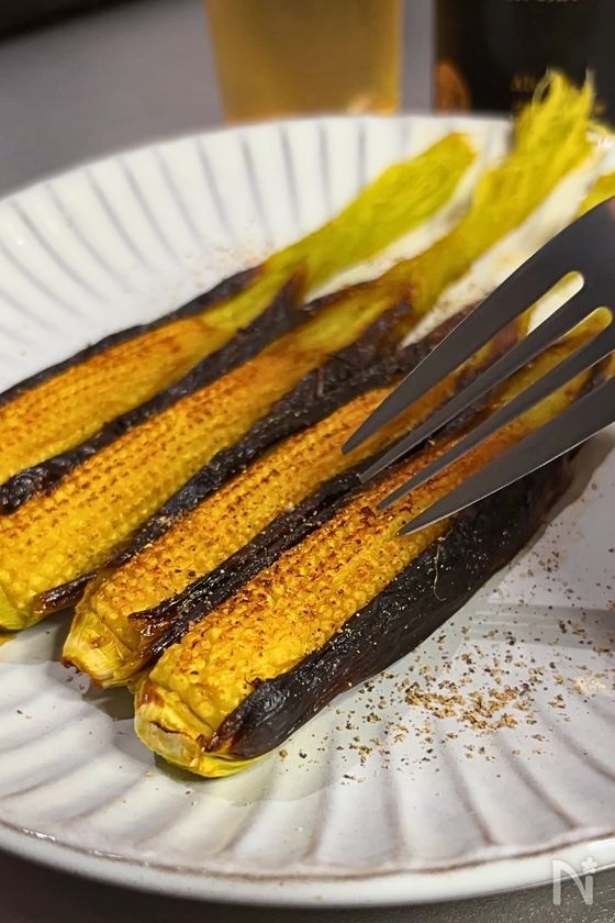 (5) もう一度グリルに戻し、5分程度、実もこんがりさせる。お好みで黒胡椒を振り、ひげと一緒に丸ごと召し上がってみてください♪