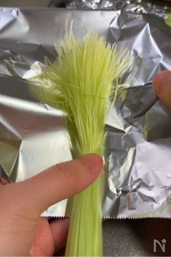 その後、焦げ防止のため上部のヒゲ部分のみアルミホイルで巻く。