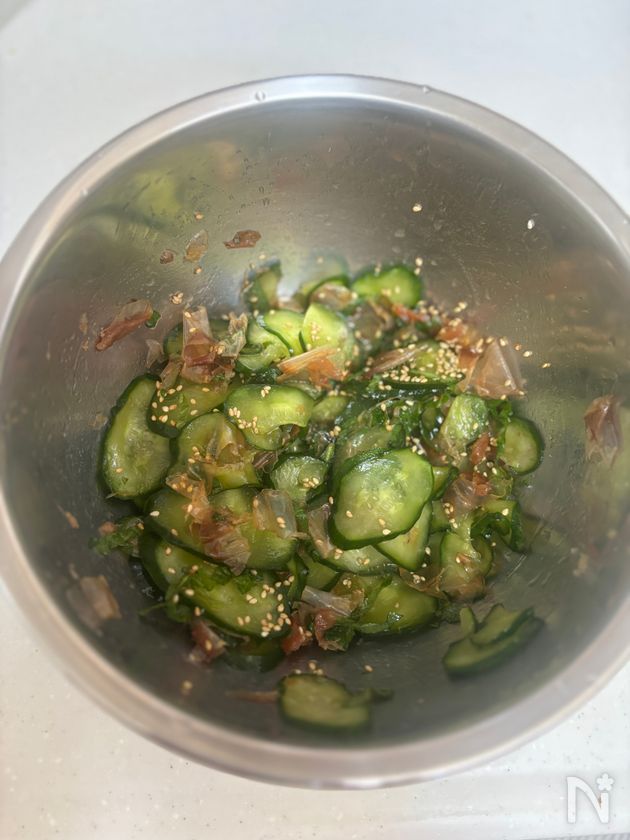 きゅうりは水気をよく搾ってから調味料と和えることで、味がぼやけません。