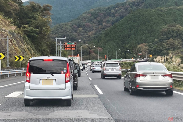 上り線の小仏トンネル手前。しばしば渋滞する(乗りものニュース編集部撮影)。