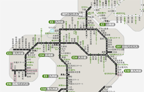 九州の高速道路は全域で通行止めとなっている(画像:NEXCO西日本)。