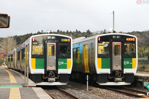 JR久留里線で使われるキハE130系ディーゼルカー(画像:写真AC)。