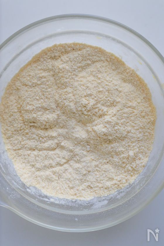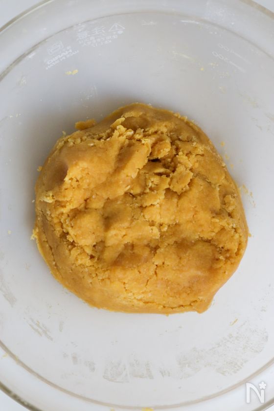 (3) 2に1を加えてゴムベラで混ぜ合わせ、生地をまとめる。