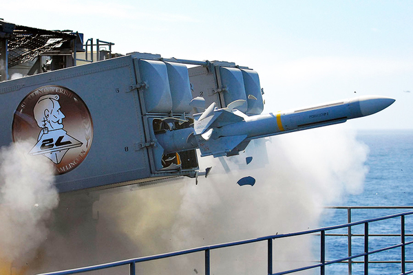 シースパローが発射される瞬間(画像:アメリカ海軍)。