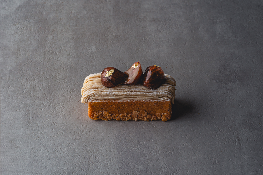 裏ごししたなめらかなマロンペーストを練りこんだ生地に、九州産の和栗を贅沢に使用したクリームと和栗で仕上げた逸品。シンプルな構成ながら上質な味わいが楽しめます。