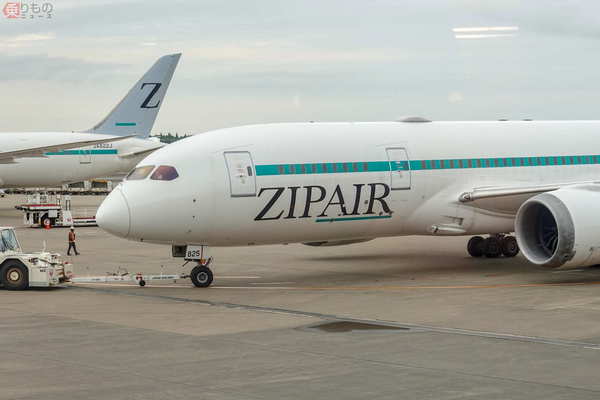ZIPAIRの飛行機(2020年、乗りものニュース編集部撮影)。