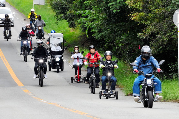 菊地伊豆市長も参加した高校生主催のEVバイク体験ツーリング(中島みなみ撮影)。