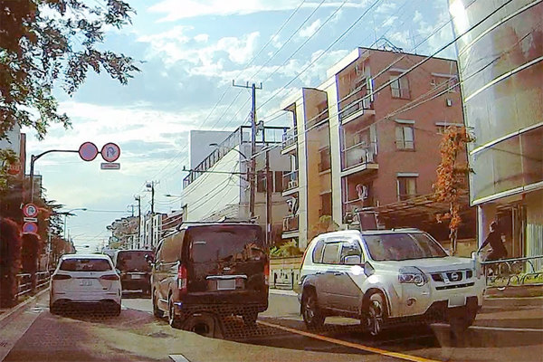井の頭通りの4車線区間。1車線2.5m幅という(ドラレコ画像)。