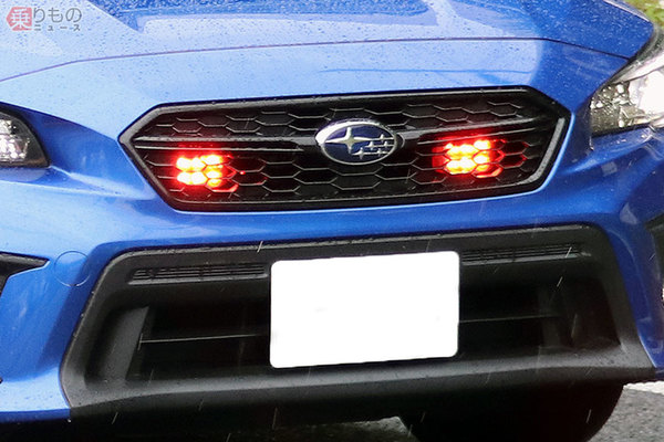 覆面パトカーには交通取締用と捜査用、そして警護用の3種類がありますが、今回、展示されたWRX S4は交通取締用で、ルーフ中央部に反転式の警光灯を備え、フロントグリル内部にもLEDタイプの警光灯を備えていました。