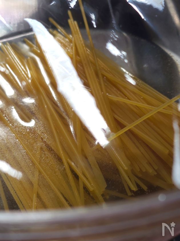 ・茹で時間8分と記載しているパスタを使用しています。7分と記載なら-1分、9分なら+1分してください。