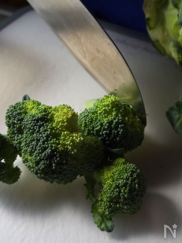 (2) 1を加熱している間にブロッコリーを小さい房に切り、
