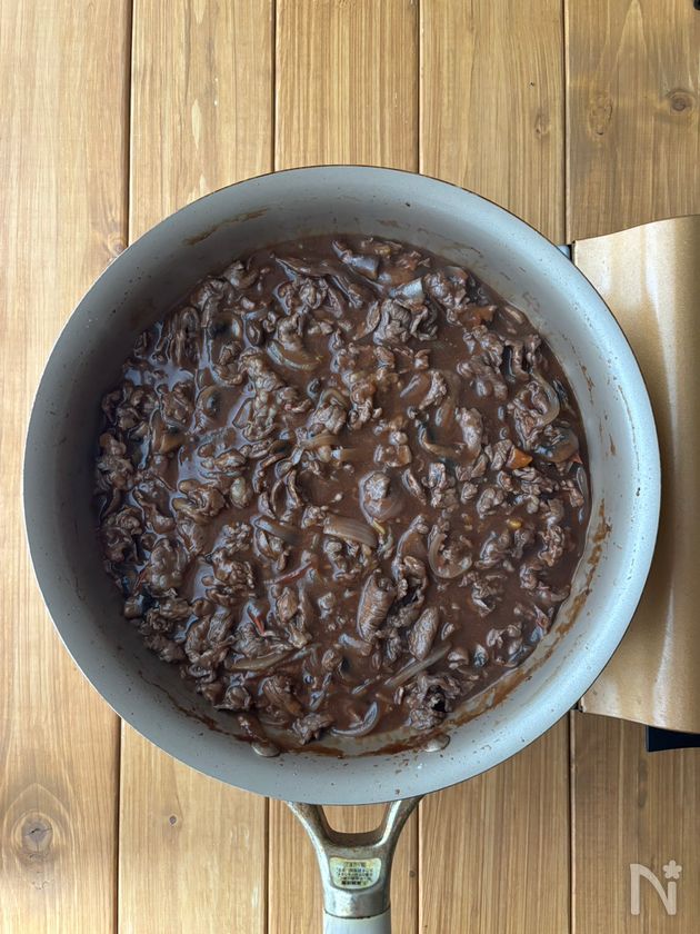 工程5で煮ている途中に水分が少なくなりすぎてしまう場合は、様子を見ながら水50ml~追加してください!
