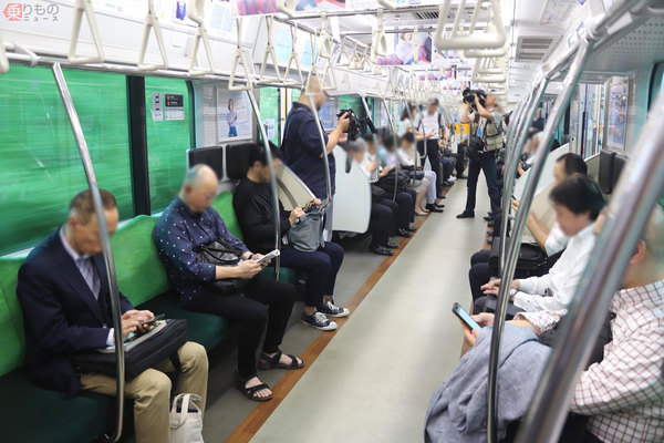 通勤電車の車内(2019年7月、大藤碩哉撮影)。