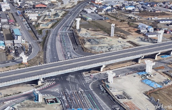 7~8月にも三重方面を含む別のランプ架設工事を実施。現場では徐々にジャンクションとしての姿が見えてきています。
