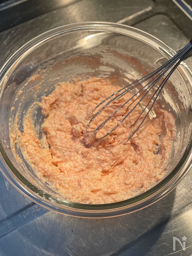 (1) ボウルに絹豆腐、【A】を入れ、豆腐が滑らかになるまで泡立て器で混ぜる。