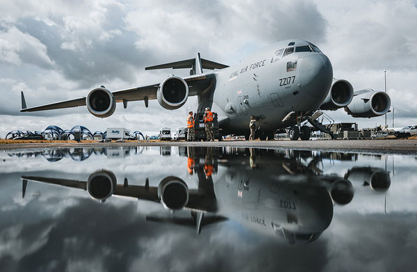 RIAT2023に展示されたC-17輸送機。ウィリアム皇太子一家も視察した(画像:イギリス空軍)。