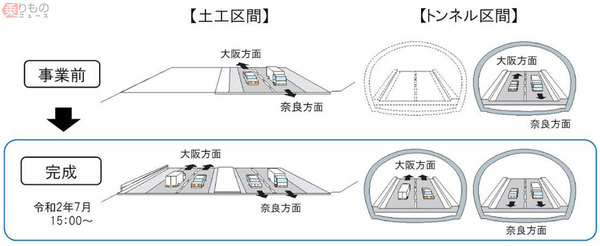NEXCO西日本は2020年6月16日(火)、南阪奈道路の大阪・奈良府県境にあたる太子IC~葛城IC間で工事を進めていた約2.9kmの付加車線が、7月1日(水)15時に完成すると発表しました。これにより同区間は対面通行が解消され、片側2車線ずつの4車線で走行できるようになります。