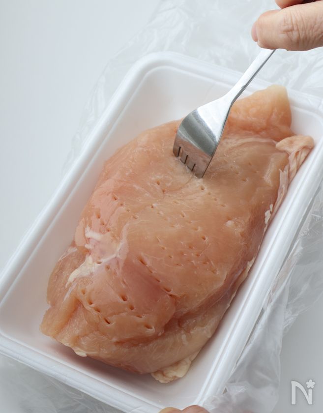 (下準備) ※鶏むね肉はフォークを刺して穴をあける