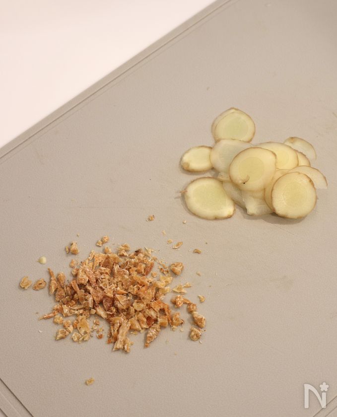 ※生姜は薄く輪切り、干しえびは粗みじんに切る