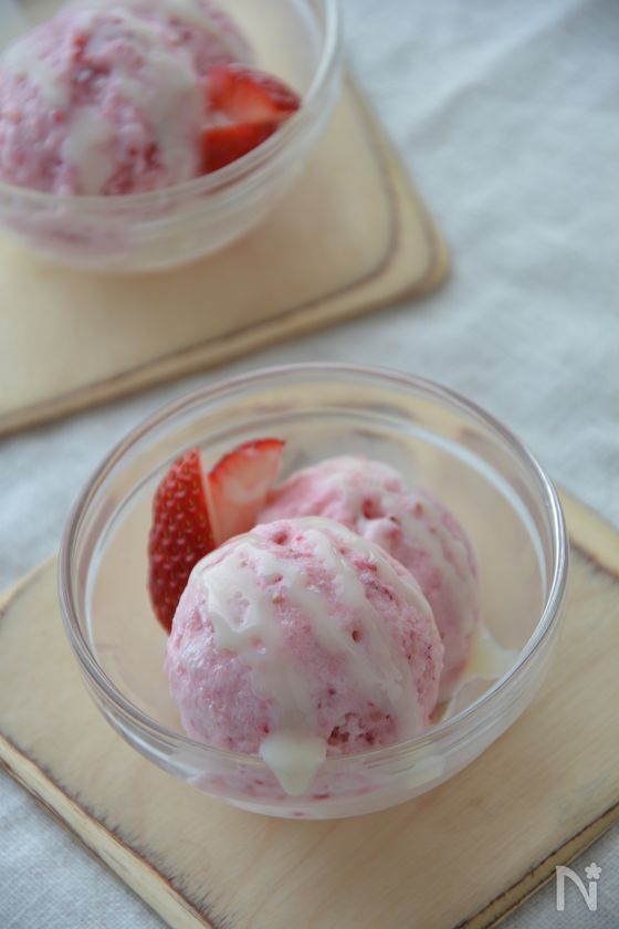 (3) 凍ったら、残りの牛乳を入れて混ぜ、再度冷凍庫で30分冷やす。