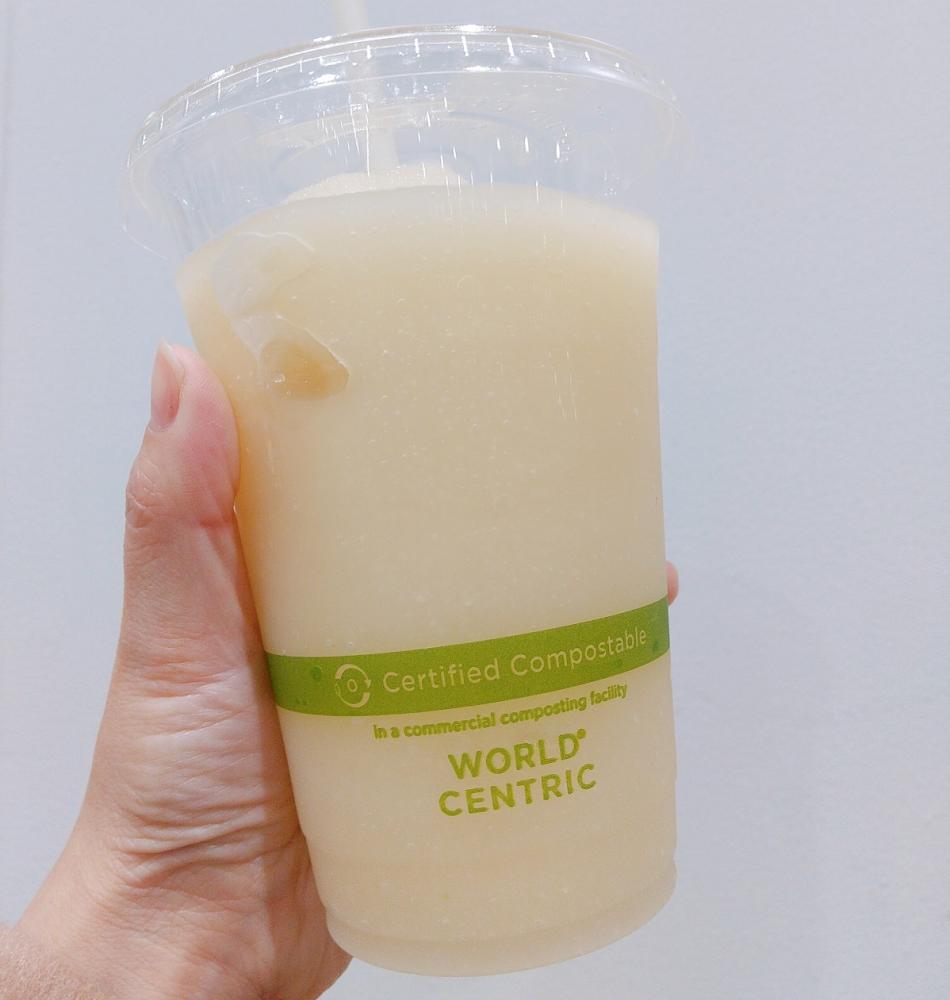 コストコのフードコート定番のスムージーは、1~2か月でフレーバーが切り替わります。秋はラ・フランスでしたが、12月上旬に訪れると、「白ぶどう」味に替わっていました。価格は240円。
