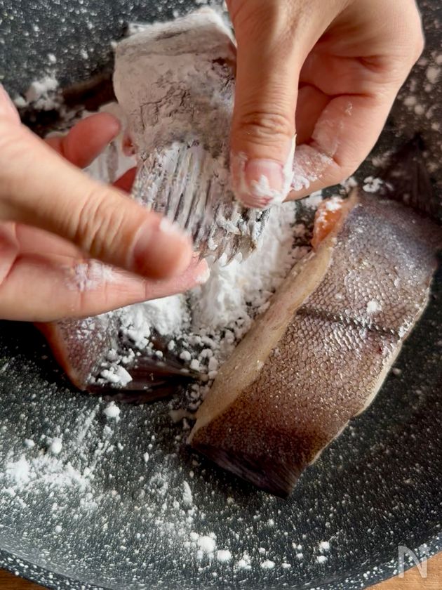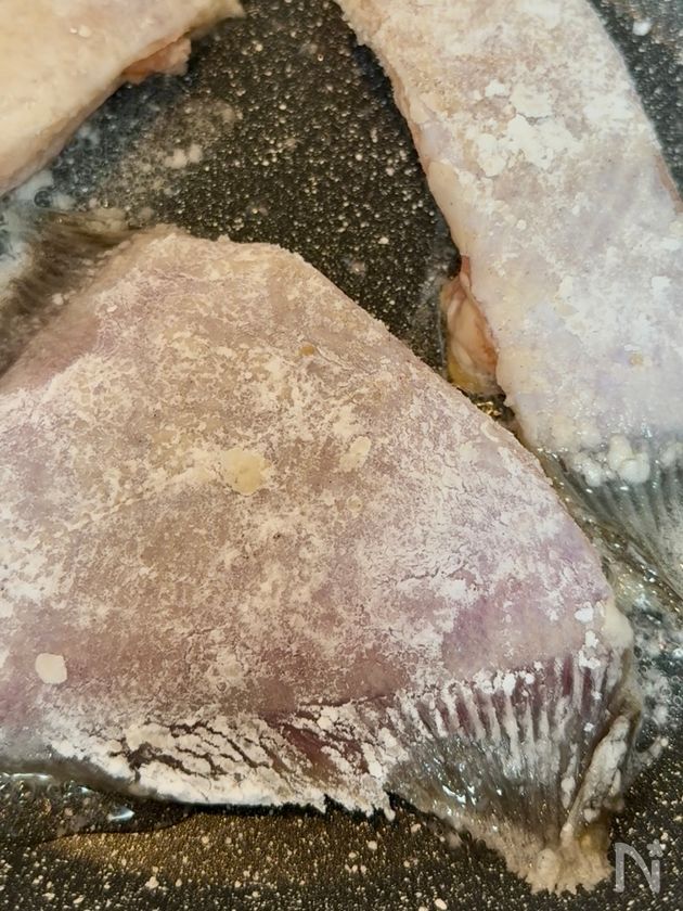 ◎ カレイはヒレまで粉をしっかりまぶすとカリッと仕上がります!