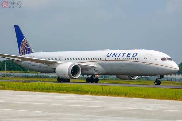 ユナイテッド航空のボーイング787-9。トラブルを起こした機とは別のもの(乗りものニュース編集部撮影)。