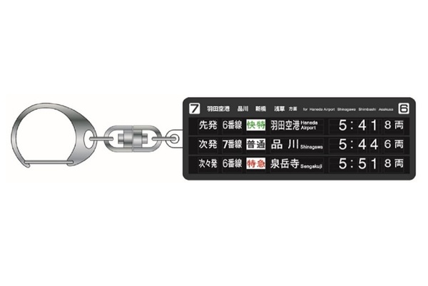 京急川崎駅ホームの「パタパタ」発車案内装置を模したアクリルキーホルダー(画像:京急電鉄)。