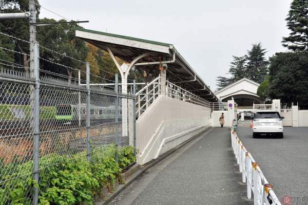 この付近が無煙区間とされた理由――それは原宿駅に、天皇陛下が行幸時に利用される通称「宮廷ホーム(皇室専用ホーム)」があるためでした。神様である天皇の専用ホームを煙で汚してはならないというわけです。現在も山手線の原宿駅ホームから約200m離れた代々木寄りに、草むしたレールと上屋付きホームが見えます。正式には原宿駅側部乗降場と名付けられています。