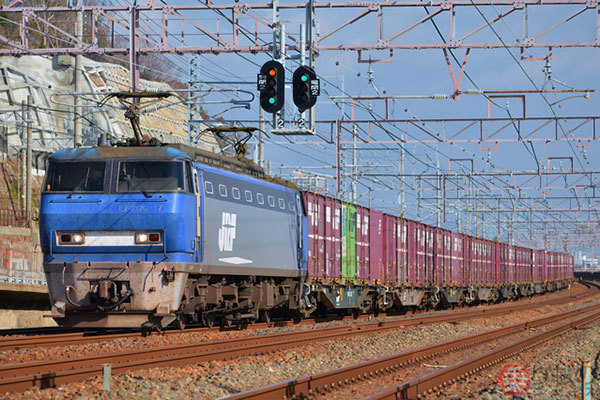 コンテナ貨車をけん引するJR貨物のEF200形電気機関車(画像:photolibrary)。
