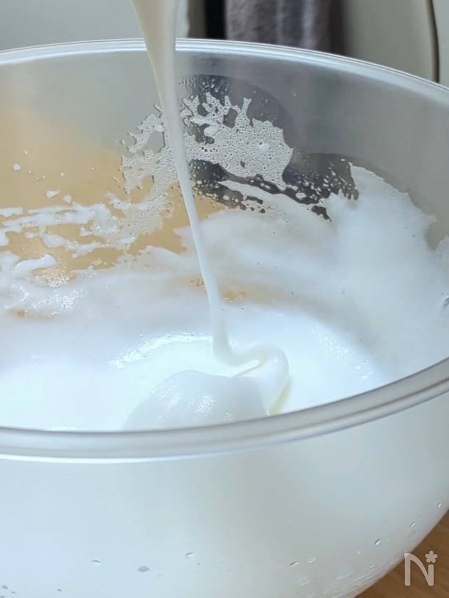 角が立たない程度のやわらかいメレンゲを作る。