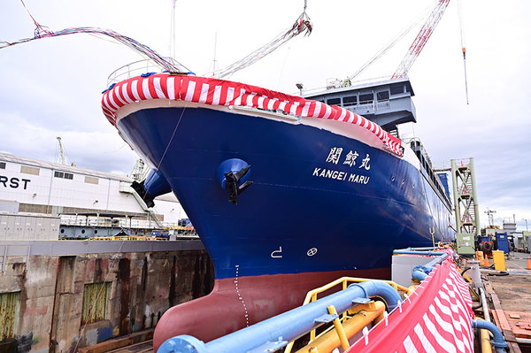 「関鯨丸」進水式(深水千翔撮影)。