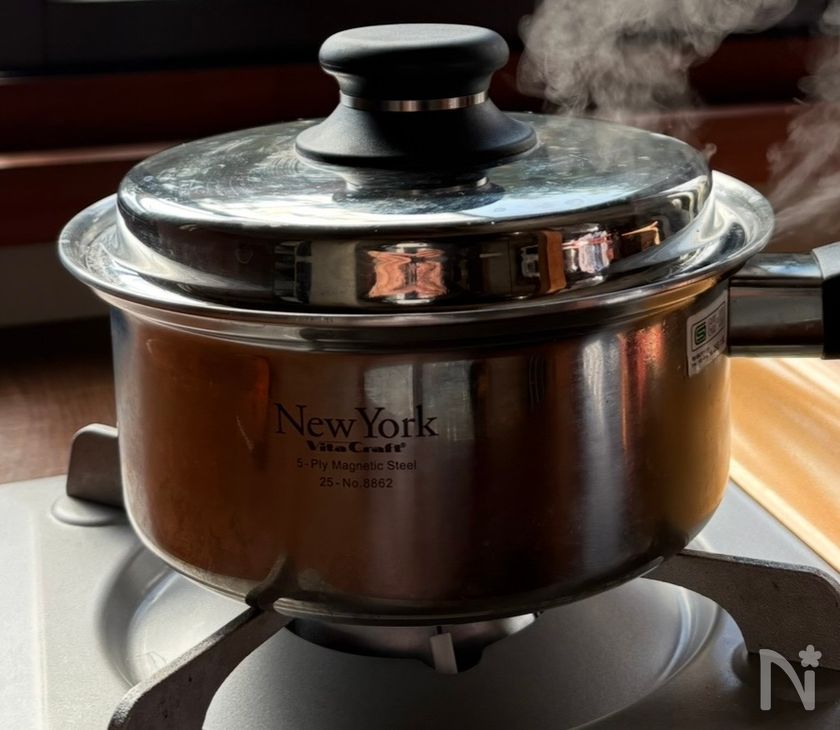 穴のない蓋で、蒸気が逃げないように蒸し煮してください。
