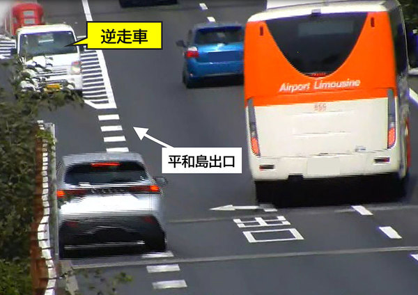 首都高速道路が公開した1号羽田線の逆走事案(画像:首都高速道路)。
