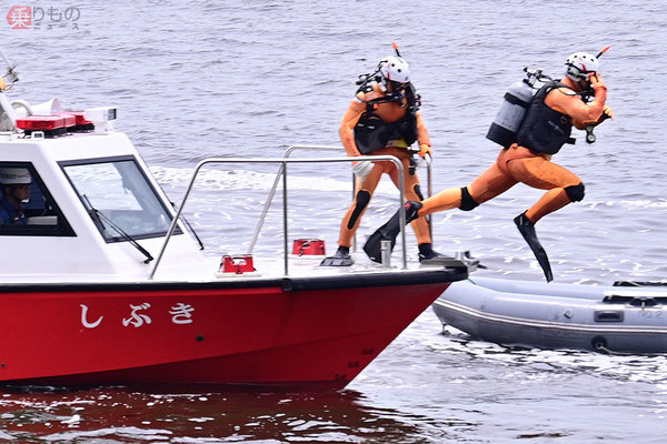 2023年6月に開催された東京国際消防防災展で、10年ぶりに披露された水難救助の訓練展示。東京消防庁が誇る大小さまざまな舟艇とともに、水難救助のプロフェッショナルたちの「妙技」が、余すところなく披露されました。