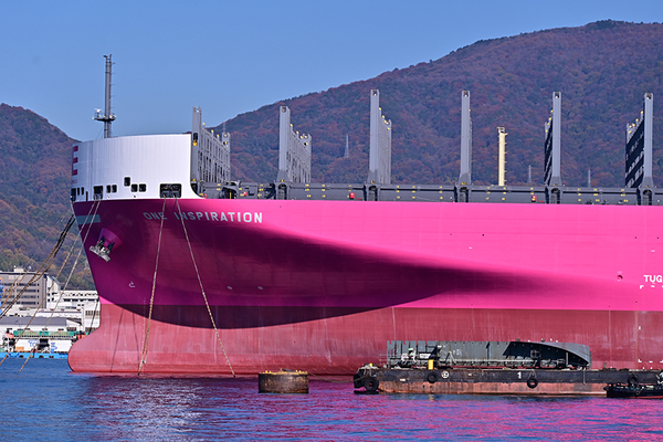 JMUと今治造船は2万4000TEU型を両社で合わせて計6隻建造しており、「ONE INSPIRATION」はその5番船。運航を担うのは海運大手の日本郵船、商船三井、川崎汽船のコンテナ事業を統合したオーシャンネットワークエクスプレス(ONE)で、まさに日本の海事産業を代表する船と言っても過言ではないでしょう。