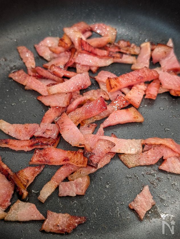 ・薄切りベーコンは、1㎝程度の短冊切り。