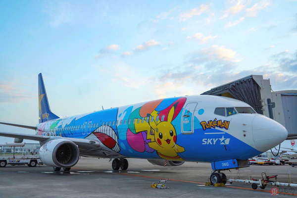 「ピカチュウジェット BC 2」は人気ゲーム・アニメとして知られている「ポケットモンスター(ポケモン)」の特別塗装機。スカイマークがポケモン社が展開する観光促進策「そらとぶピカチュウプロジェクト」に賛同したことで誕生した2機目の特別機で、「海」をイメージした特別塗装をまといます。