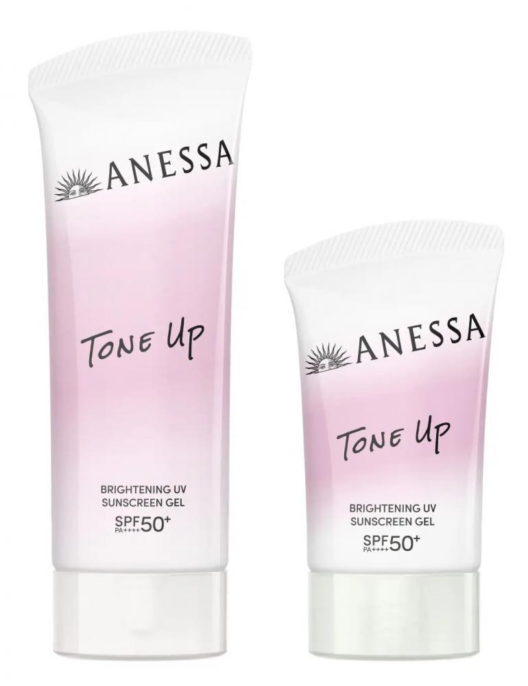 スキンケア効果とメイク下地の役割を兼ねる「アネッサ ブライトニングUV ジェル NA」も90gと40gの2サイズ展開。価格は90gが2508円、40gが1496円です。
