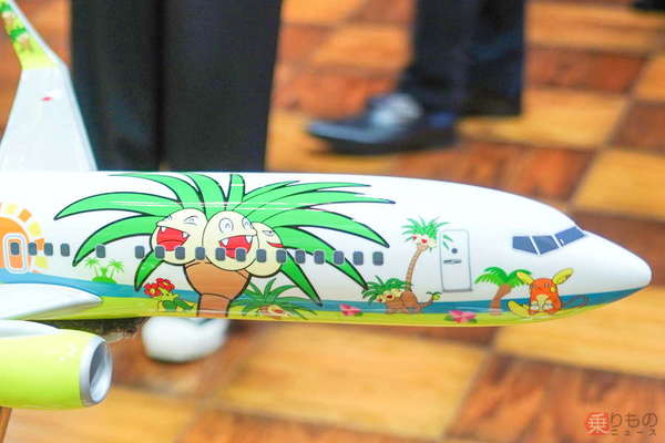 機体は同社のコーポレートカラーであるピスタチオグリーンをベースとし、宮崎県を連想させる、太陽や波、宮崎空港の名称にもなっている「ブーゲンビリア」の花をイメージ。胴体には「ナッシー」や「アローラナッシー」などのポケモンが描かれます。また、デザインは左右で若干異なるほか、胴体の底部やタイヤホイール、主翼先端の「ウイングレット」など、細かな部分にも特別塗装が施される予定です。
