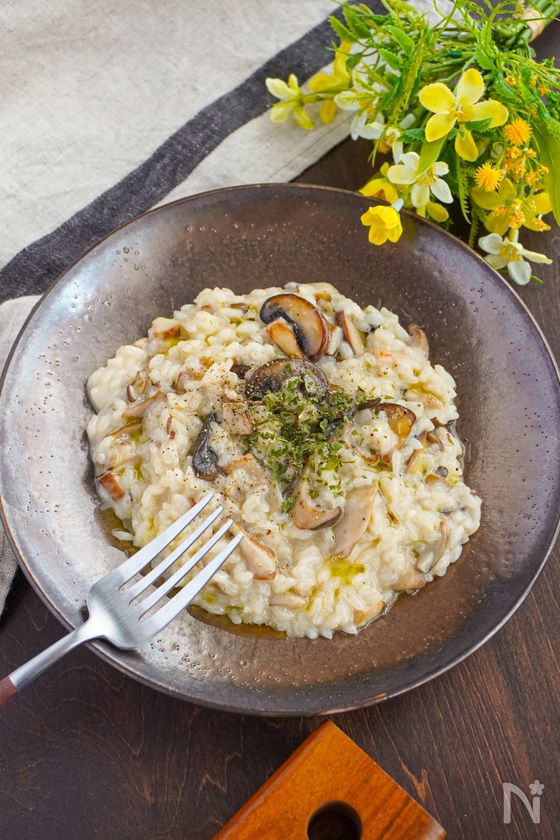 リゾットを煮るときは、お米が顔を出さないように適宜出汁を出します。