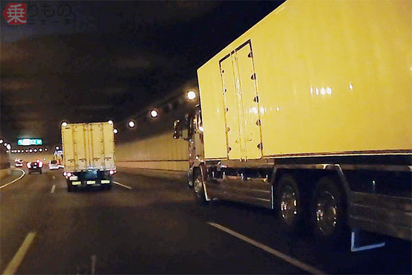 事故からドライバーを守る側面もあるものの、労働時間が増える側面もあります。法令を遵守し80km/hで左車線を延々と走るトラックもあれば、少しでも遅れを取り戻そうとするためか、それを追い越そうとするトラックも。しかし90km/h以上は出せないため、追い越しに時間がかかり、横並びとなったトラックが車線を塞ぐ光景もしばしば見られます。