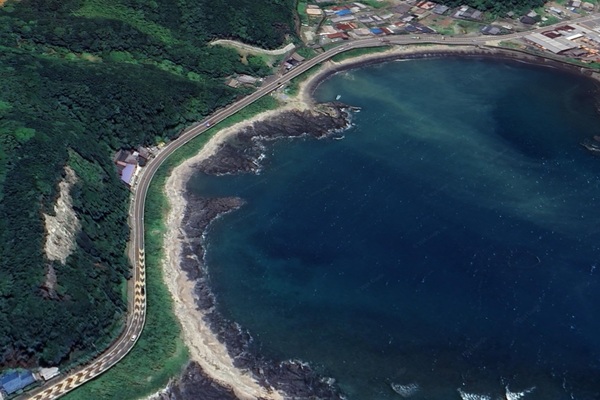 和歌山県串本町付近の国道42号(画像:Google Earth)。
